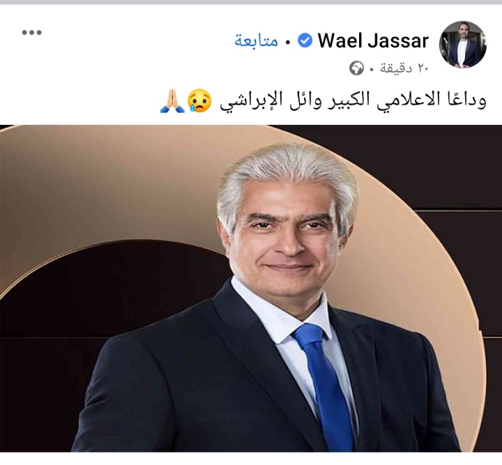 ونعى الفنان اللبناني وائل جسار، الإعلامي الراحل وائل الإبراشي، وكتب "وداعًا الإعلامي الكبير وائل الإبراشي".