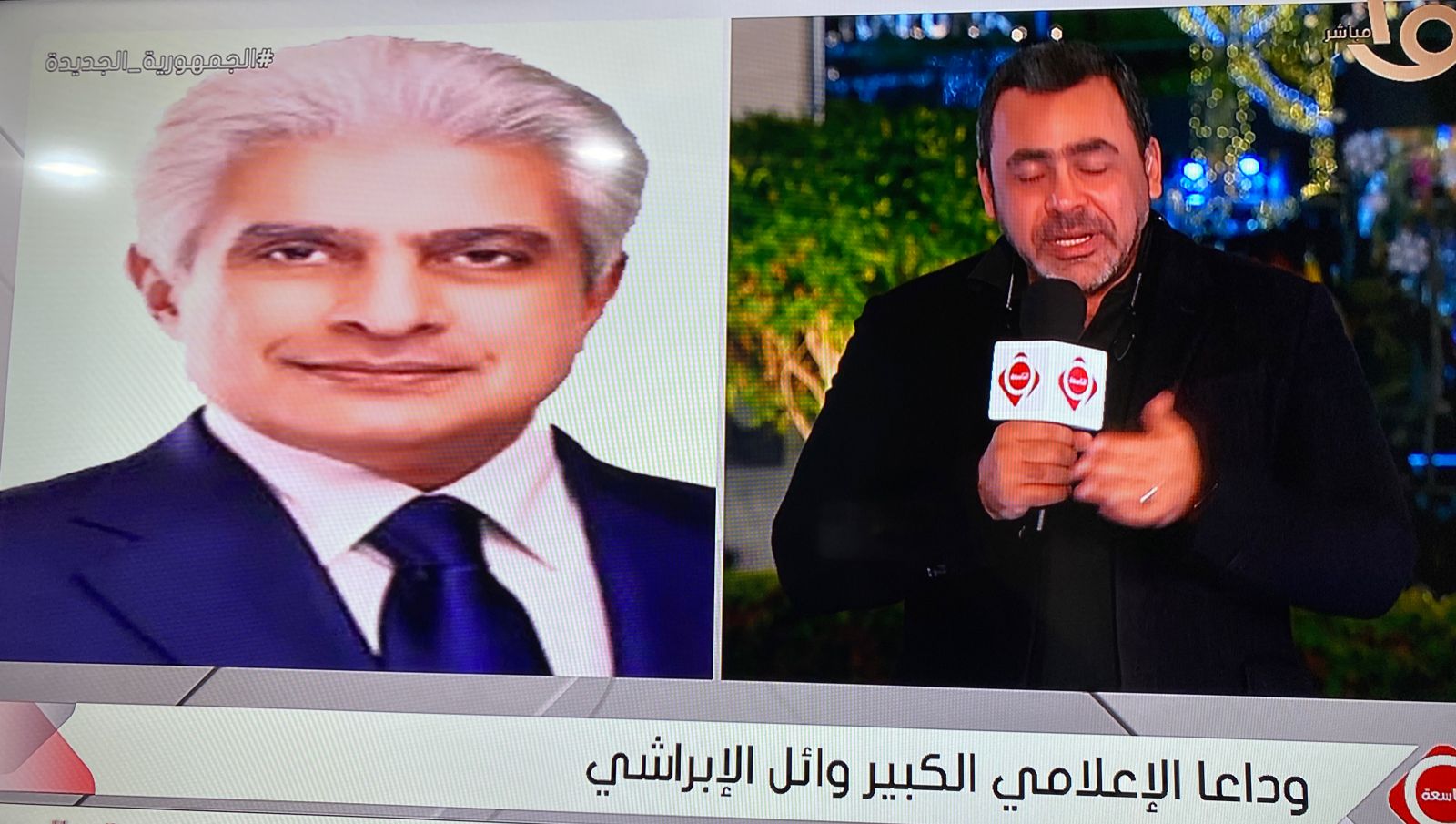 ونعى مقدم النشرة، الإعلامي وائل الإبراشي، قائلا: ننعى بكل حزن وأسى الزميل الإعلامي وائل الإبراشي الذي وافته المنية منذ قليل عن عمر ناهز 58 عاما.