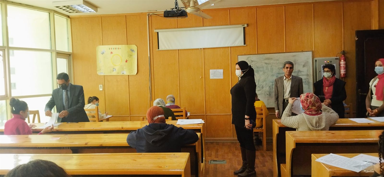 هذا وقد تفقد الدكتور عبد العزيز السيد عميد الكلية والدكتورة رشا عادل وكيل الكلية لشئون التعليم والطلاب، ومحمد على خليفه مدير الكلية، الطلاب أثناء تأدية الامتحان للاطمئنان على سير العملية الامتحانية مع اتباع كافة التعليمات الوقائية والاحترازية التى أقرتها الدولة لضمان سلامة الجميع.