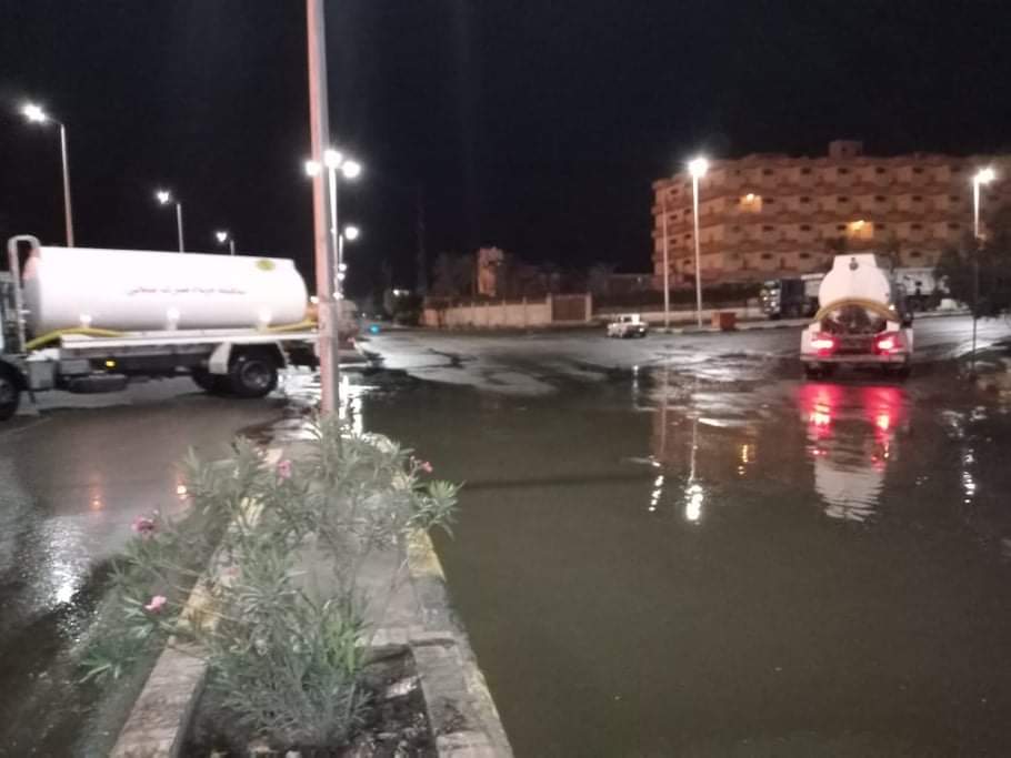 جهود مكثفة لإزالة تراكمات مياه الأمطار بشوارع سفاجا| صور