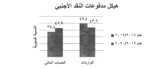 وأوضح الجهاز المركزي للتعبئة العامة والإحصاء أن هيكل مدفوعات النقد الأجنبي تأثر حيث ارتفعت نسبة المدفوعات عن الحساب المالي للاستثمارات المختلفة، لتصل إلى 42.9% خلال عام 2019/2020 مقابل 37.4% في العام السابق.