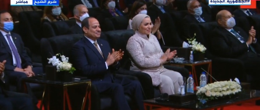 ووصل الرئيس عبدالفتاح السيسي رئيس الجمهورية، والسيدة قرينته، إلى مقر مسرح شباب العالم لافتتاح المسرح.