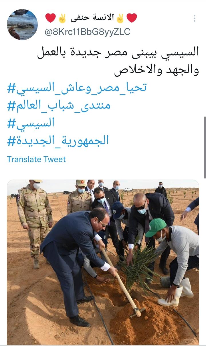 تفاعل حساب مع الهاشتاج قائلا: السيسي بيبنى مصر جديدة بالعمل والجهد والإخلاص.