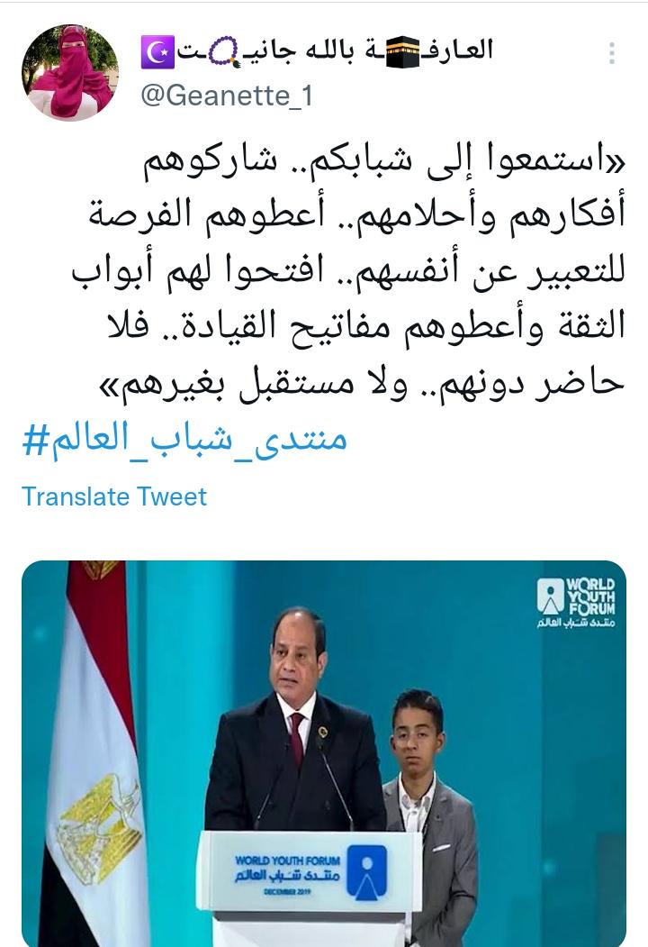 وقال آخر: طاقة إيجابية، شباب كله أمل، أنا فخورة جدا إن اسم مصر يتردد علي جميع الأصعدة وبكل لغات العالم.