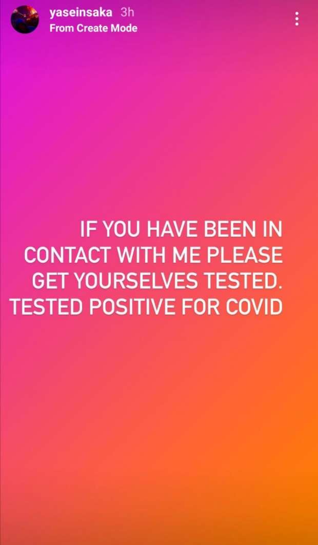 وكتب ياسين السقا على حسابه الشخصي بـ انستجرام: لو كان حد على تواصل معايا، رجاء يعمل اختبار لنفسه، لأن تحليلي إيجابي كورونا.