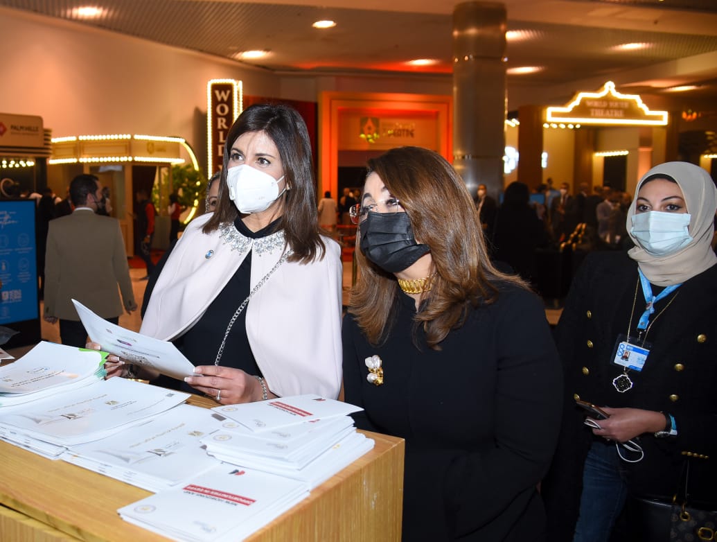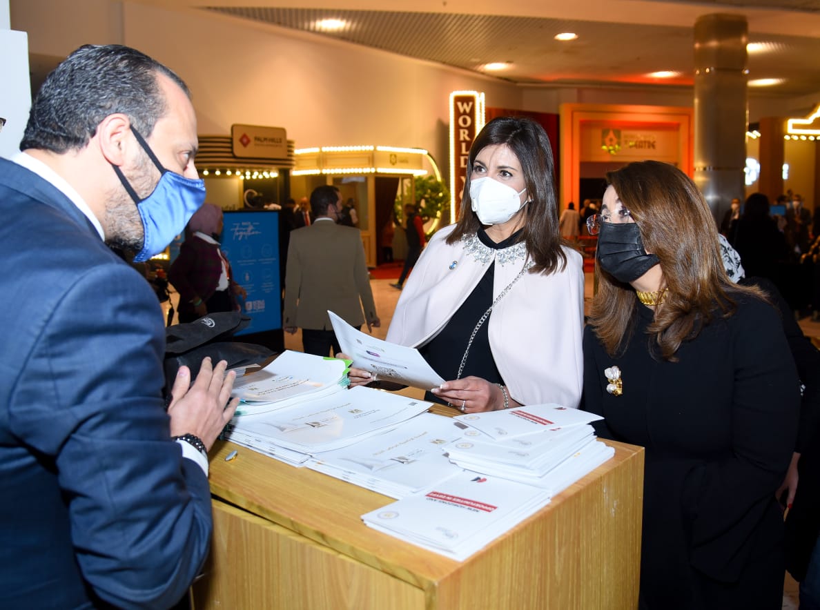وزيرة الهجرة وغادة والي تتفقدان جناح الوزارة بمنتدى شباب العالم