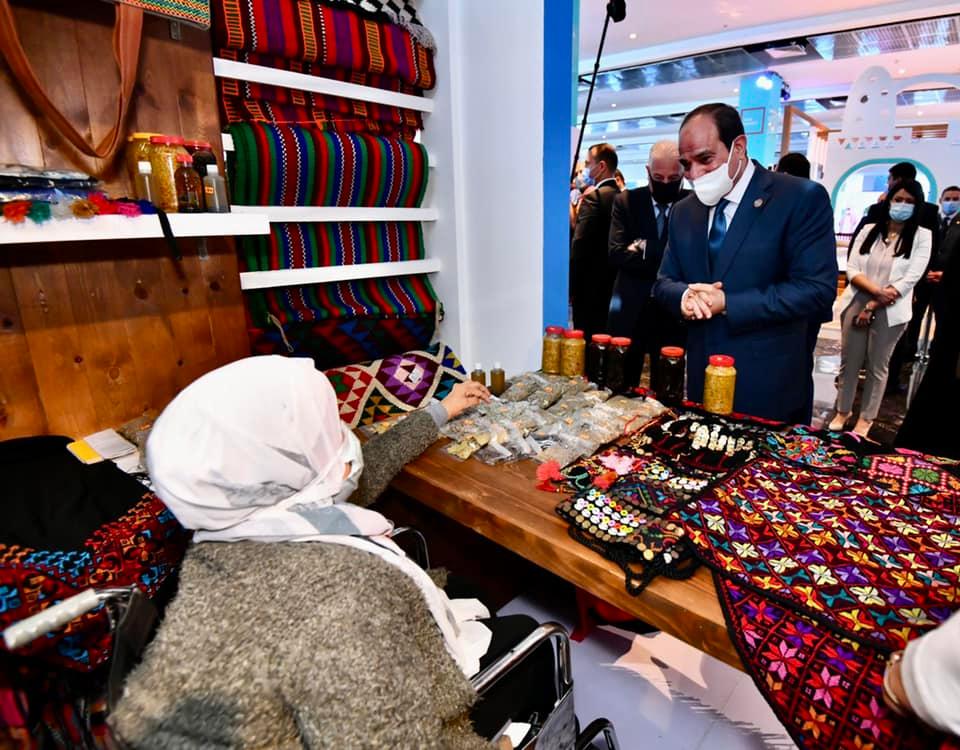 السيسي يتفقد معرض أبناء سيناء ومتحف حياة كريمة بمنتدى شباب العالم