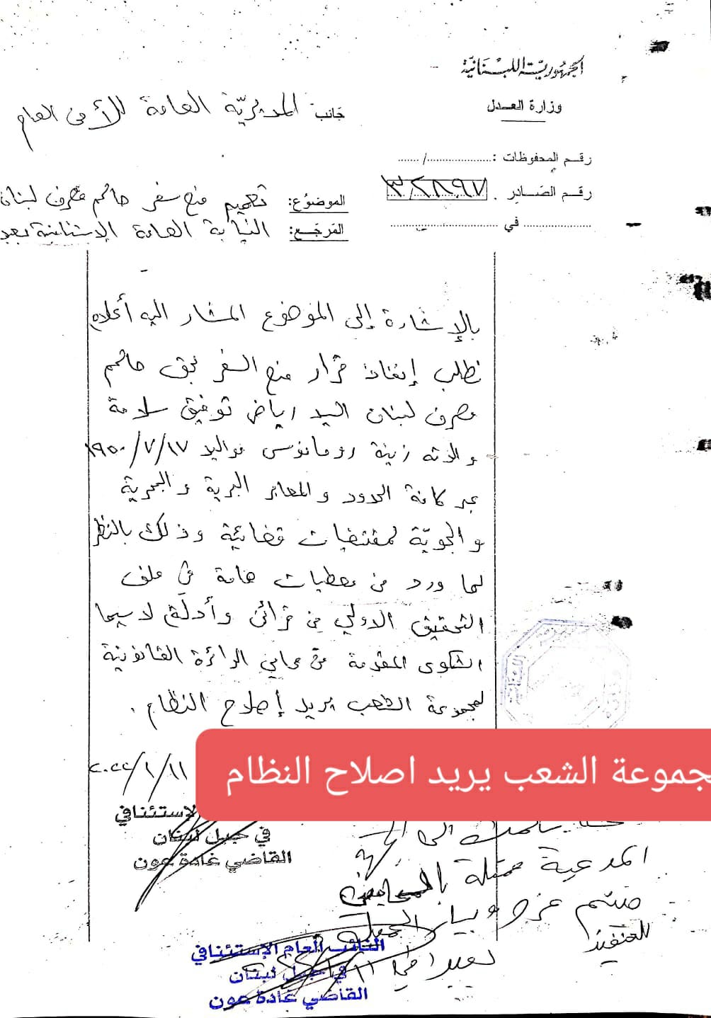وأوضحت المذكرة القضائية، أن قرار منع السفر جاء نظرا لما ورد من معطيات مهمة في ملف التحقيق الأولي من قرائن وأدلة، لا سيما الشكوى المقدمة من محامي الدائرة القانونية لـ "مجموعة الشعب يريد إصلاح النظام" ممثلة بالمحاميين هيثم عزو وبيار الجميل.