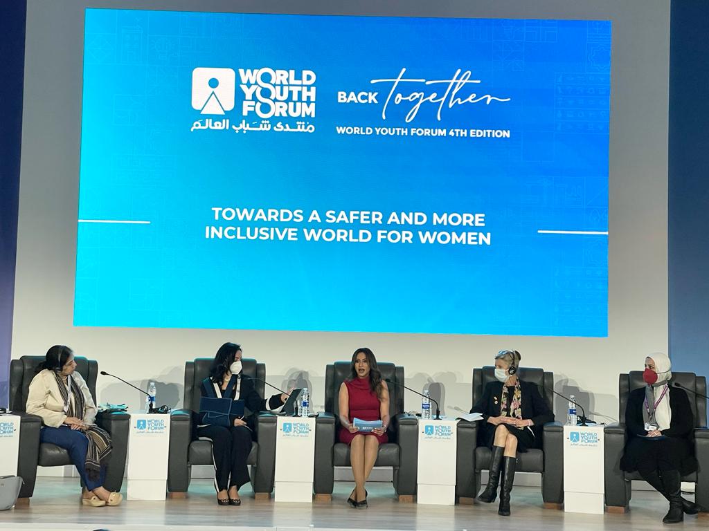 شاركت الدكتورة مايا مرسي، رئيسة المجلس القومي للمرأة، اليوم في فعاليات جلسة نحو عالم آمن وشامل للمرأة والتي جاءت ضمن فعاليات النسخة الرابعة من منتدى شباب العالم ، بحضور ورعاية الرئيس عبد الفتاح السيسي، رئيس الجمهورية، بمدينة شرم الشيخ بمحافظه جنوب سيناء، خلال الفترة من 10 إلى 13 يناير 2022.