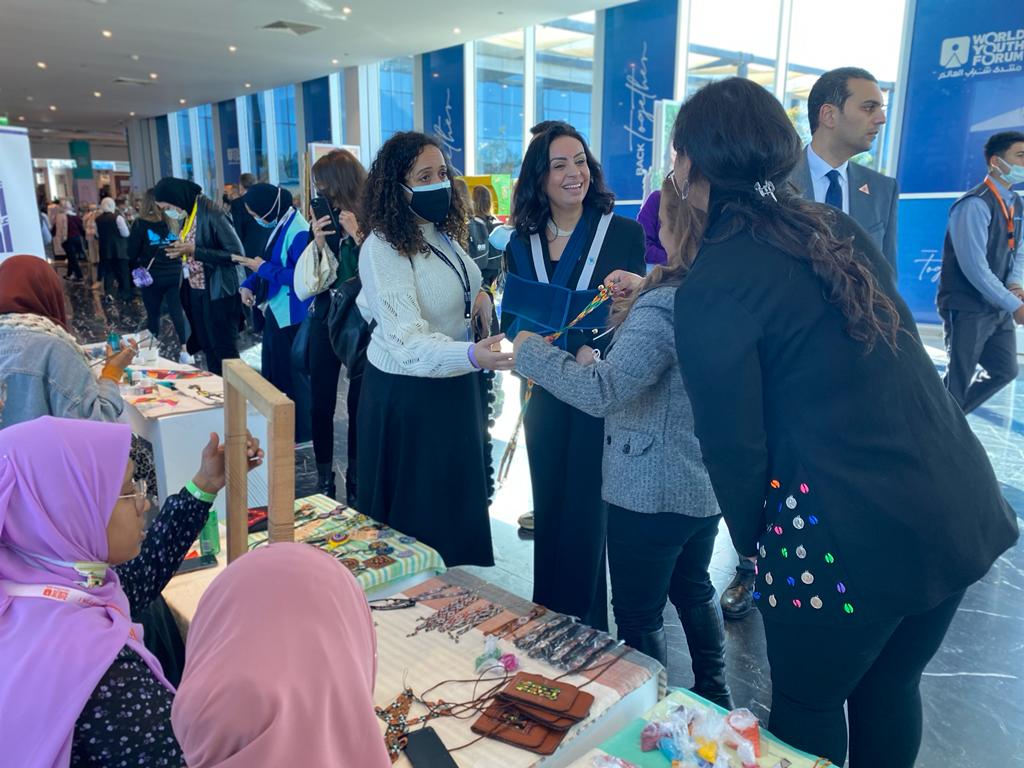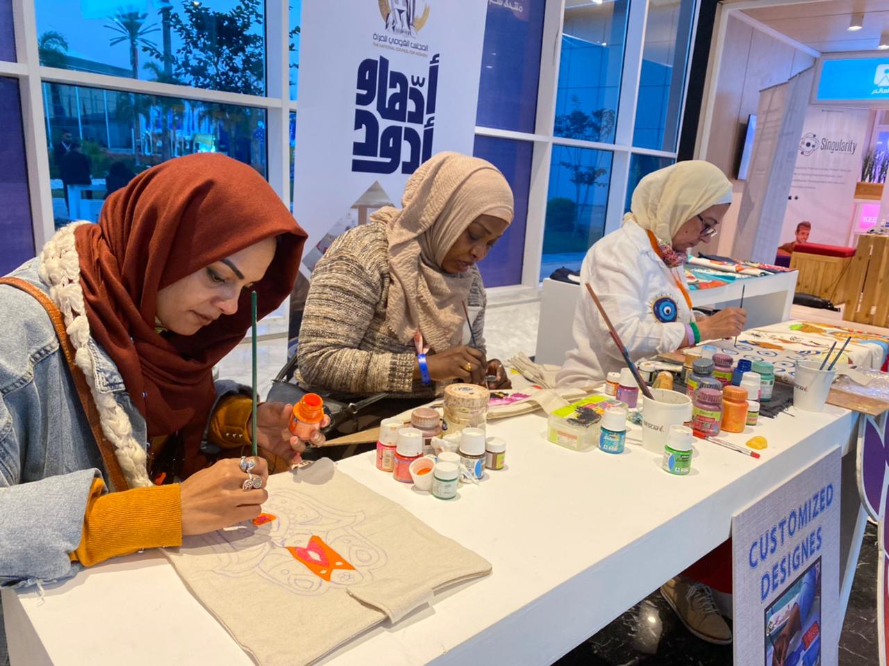 تفقدت الدكتورة مايا مرسي رئيسة المجلس القومي للمرأة أمس، العرض الحي live show لسيدات مصريات على حرفتي خرز النول والرسم على القماش، والذي يشارك به مركز تنمية مهارات المرأة على هامش فعاليات النسخة الرابعة من منتدى شباب العالم بشرم الشيخ في الفترة من 10 -13 من الشهر الجاري.