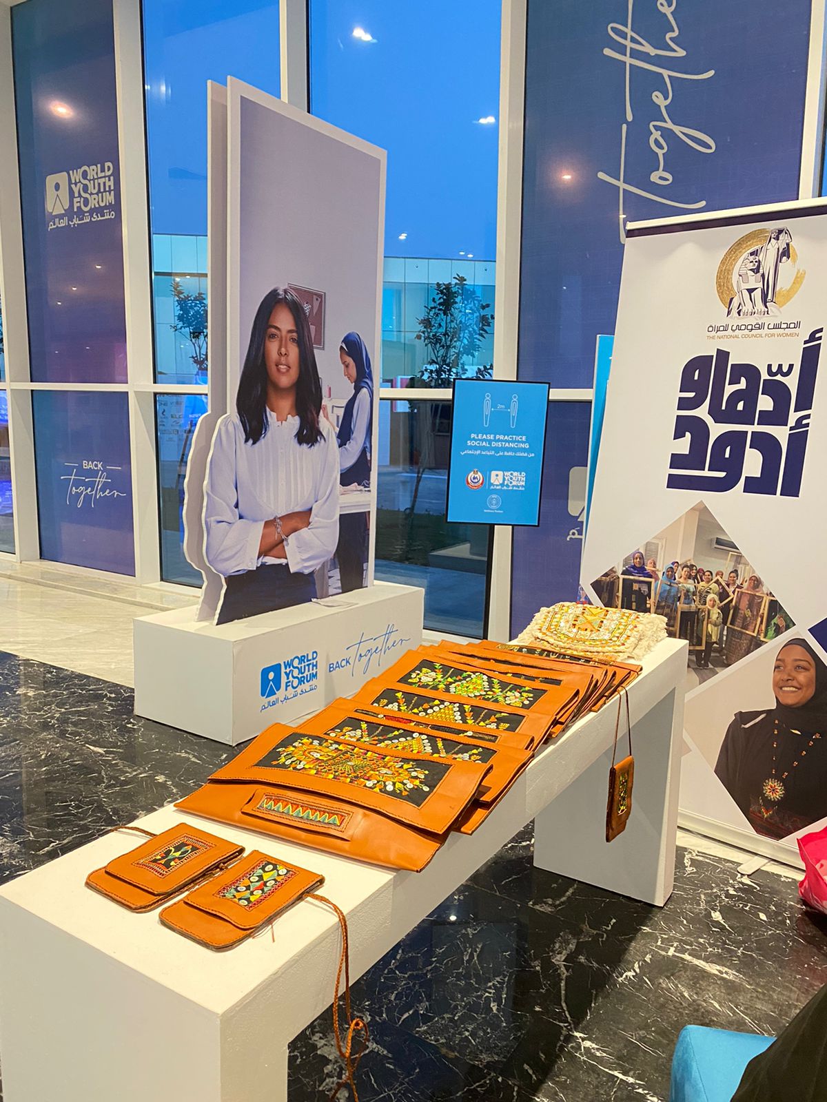 وعبرت الدكتورة مايا مرسي عن سعادتها بمشاركة المجلس، بالمنتدى من خلال هذا العرض الحي، لحرفتي خرز النول والرسم على القماش، لما يتيحه من فرصه كبيرة لعرض المنتجات المصنوعة بأيادي سيدات مصريات أمام الوفود الشبابية المشاركة في المنتدى من جميع دول العالم، وتعريفهم بالتاريخ المصري وحرفه التراثية.