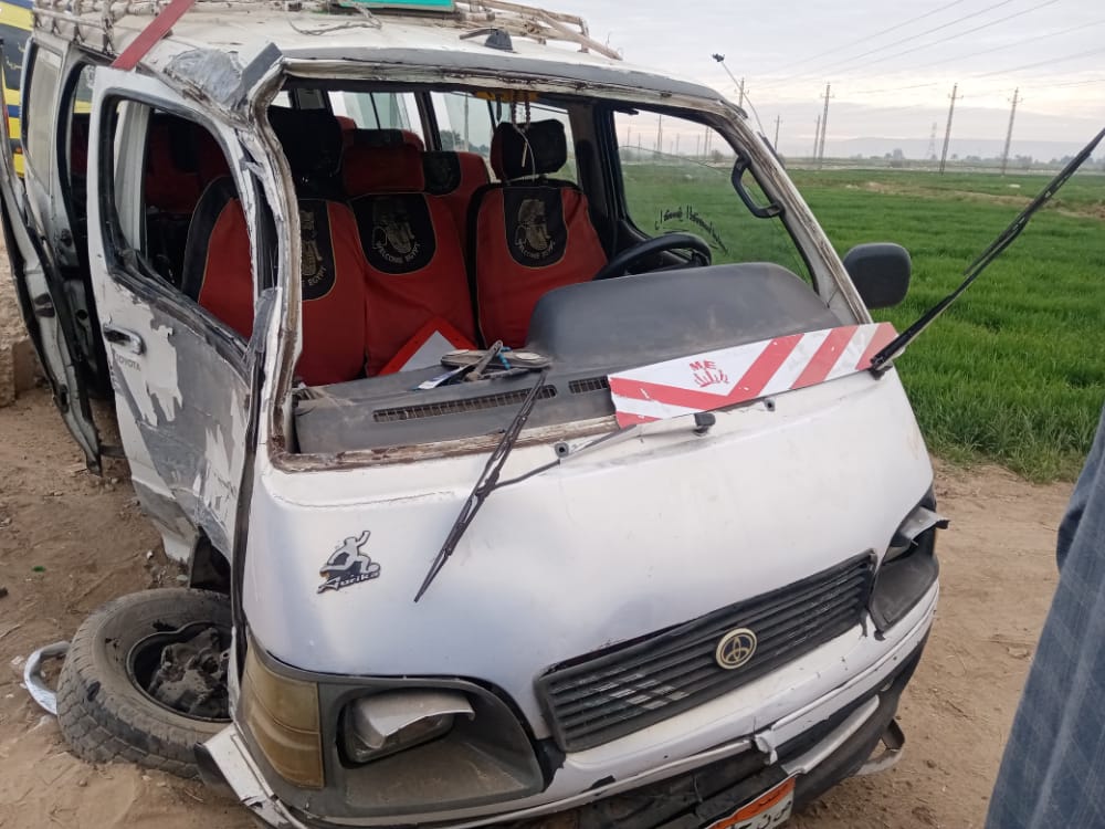 العناية الإلهية تنقذ ركاب ميكروباص بعد اصطدامه بعمود في قنا | صور