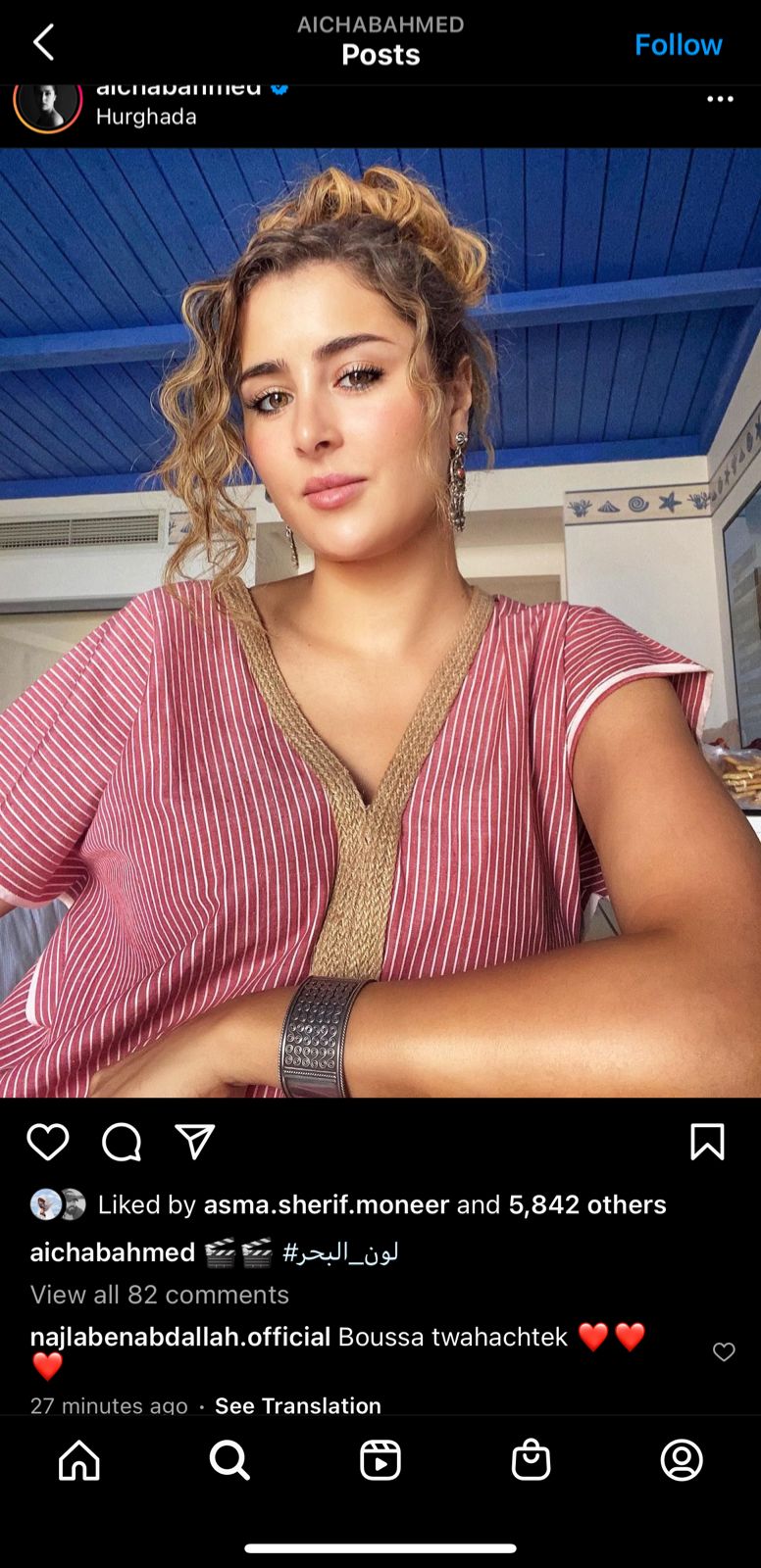 شاركت الفنانة التونسية عائشة بن أحمد جمهورها، بصورة جديدة من كواليس مسلسل لون البحر، عبر حسابها الشخصي على موقع تبادل الصور والفيديوهات القصيرة انستجرام.