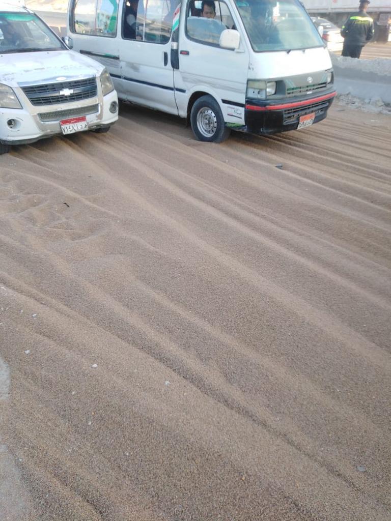 تعود تفاصيل الواقعة عندما تلقت الإدارية العامة للمرور، بلاغا يفيد بانقلاب سيارة نقل محملة بغلال القمح على الطريق الأوسطي أدى إلى توقف الحالة المرورية.