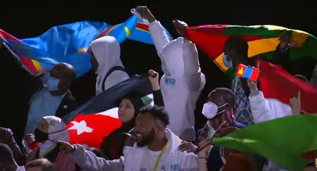 وزينت أعلام الدول المشاركة في النسخة الحالية من منتدى شباب العالم، حفل الختام، حيث يشارك 5 آلاف شاب وشابة من 196 دولة حول العالم، كما شاهد الرئيس عبد الفتاح السيسي، والسيدة انتصار قرينته، عرضًا غنائيًا بالمظلات وعلم مصر ضمن فعاليات حفل الختام.