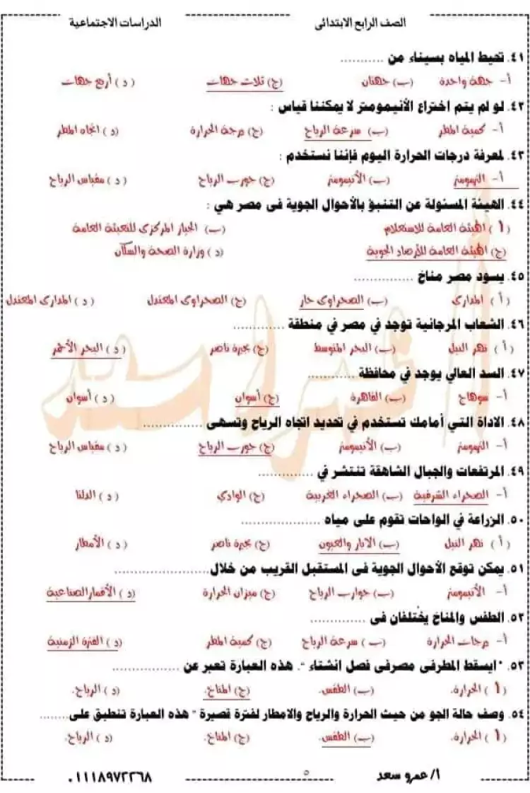 امتحانات الصف الرابع الابتدائي 2022 علوم