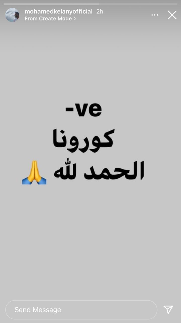 أعلن الفنان محمد كيلاني تعافيه من فيروس كورونا، وذلك بعد إعلان إصابته بالفيروس منذ عدة أيام، حيث كتب كيلاني عبر خاصية استوري على حسابه الرسمي على موقع تبادل الصور والفيديوهات انستجرام: سلبي كورونا.. الحمد لله.