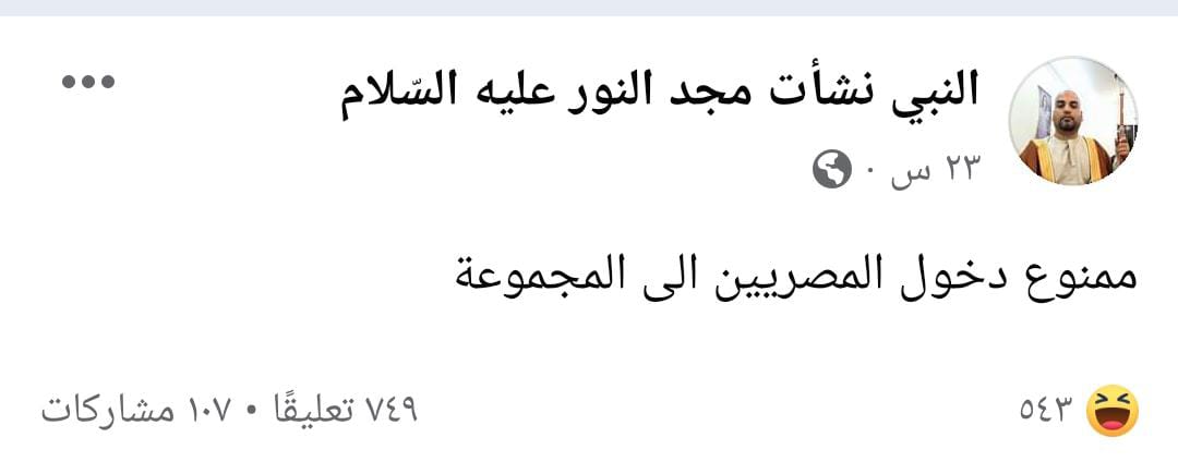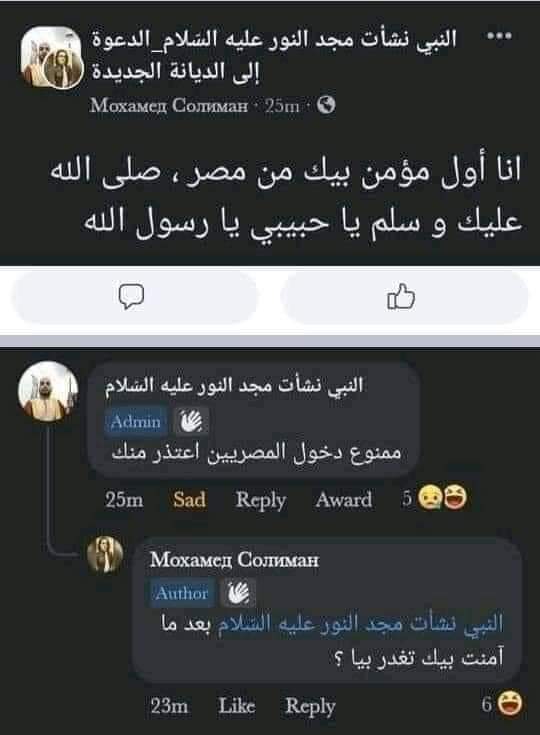 نشأت مجدي النور أو نشأت مدعي النبوة خلال البث المباشر وأيضًا من خلال منشوراته عبر صفحته، أن المصريين ممنوعون من الدخول في الديانة الجديد ومن دخول مجموعته الخاصة على موقع التواصل الاجتماعي فيسبوك.
