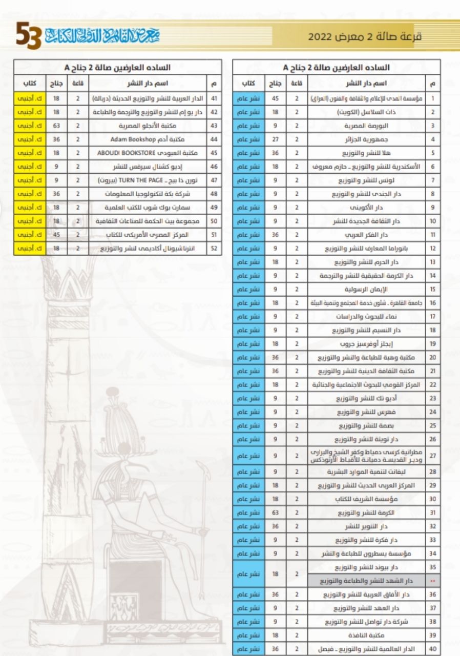 ننشر التفاصيل الكاملة لصالات العرض وأجنحة الناشرين بمعرض القاهرة الدولي للكتاب الـ 53