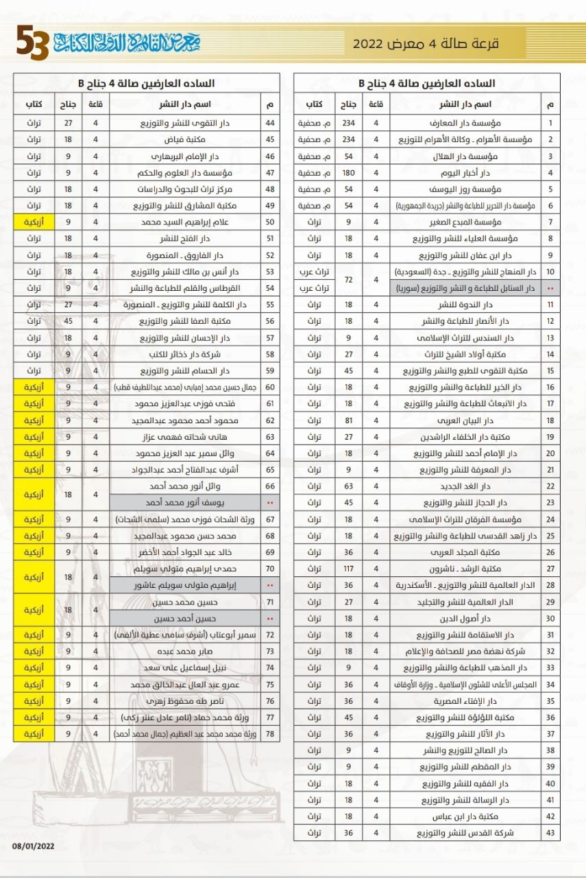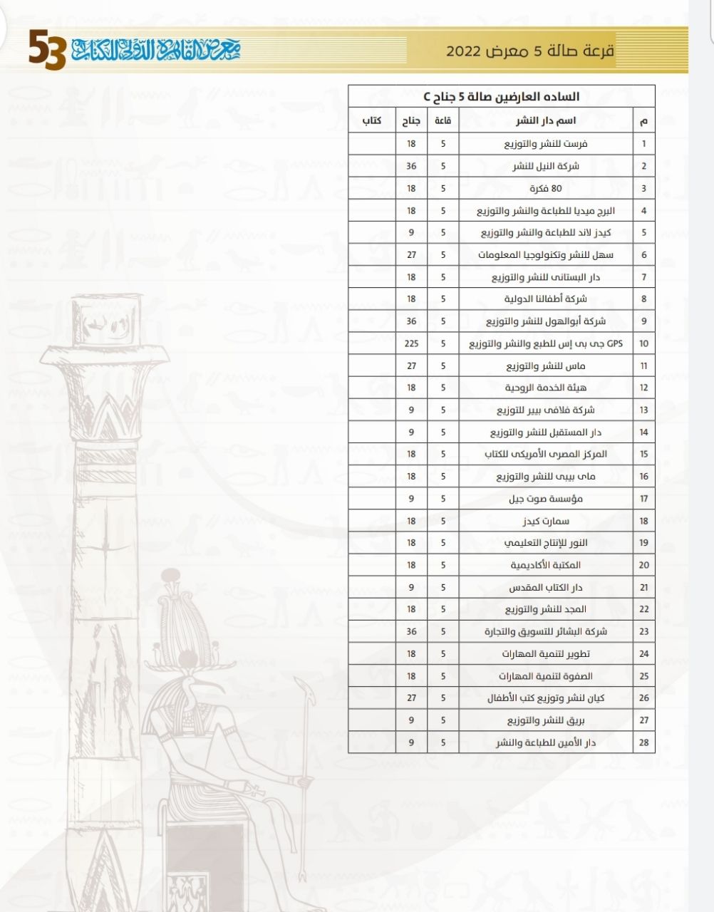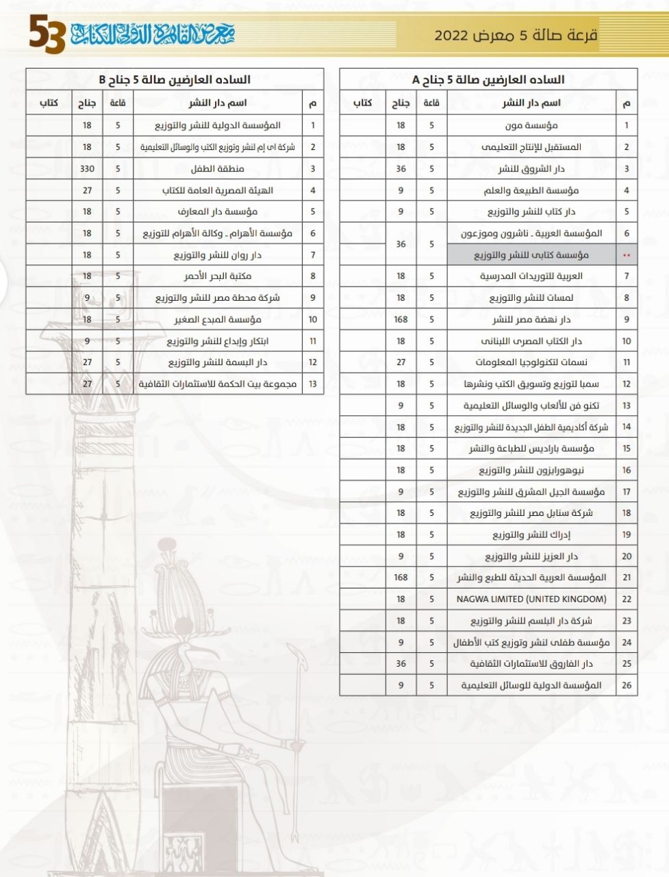 أماكن دور النشر بـ صالة 5 في معرض القاهرة الدولي للكتاب