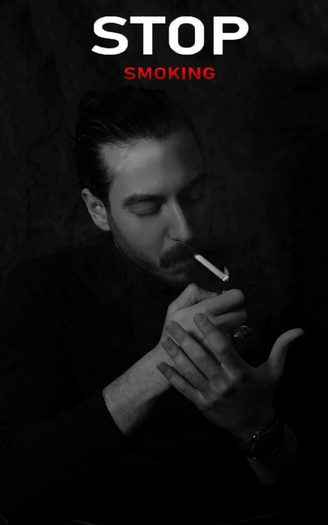 استعان الشاب أحمد مسعد، بصديقه فارس ريان، واختار خلفية ومنطقة تصوير مناسبة، وحرص خلال الصور أن يتحدث عن مراحل تأثير التدخين على الشخص، والتي بدأت بالتحذير ثم المرض، وتتحدث عن أنه قاتل.