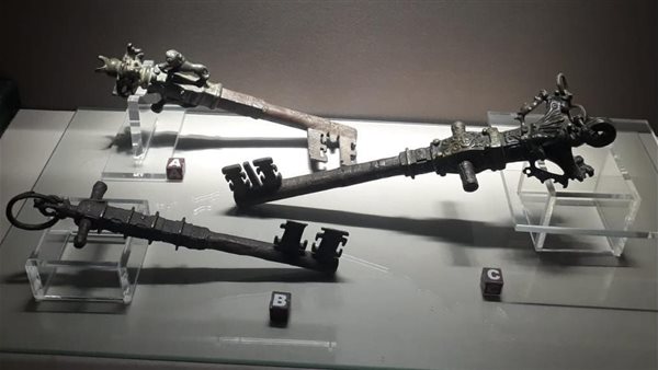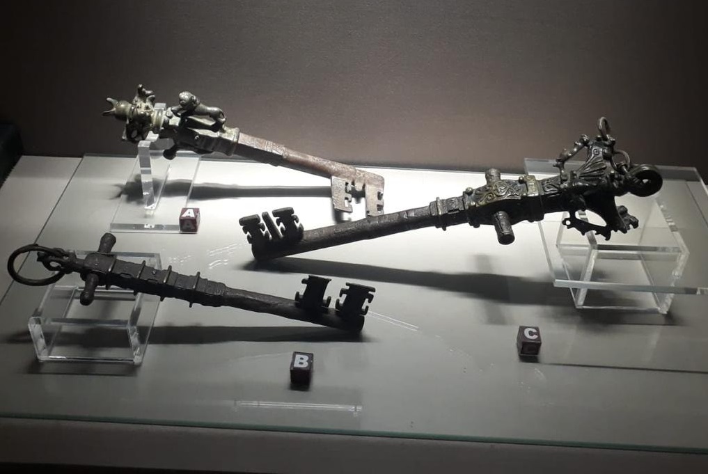 والقطعة التي يعرضها المتحف عبارة عن 3 مفاتيح ضخمة لبوابات خشبية، زُين اثنان منهما على شكل تاج عمود كورنثي بينما زُين الثالث على شكل صليب.