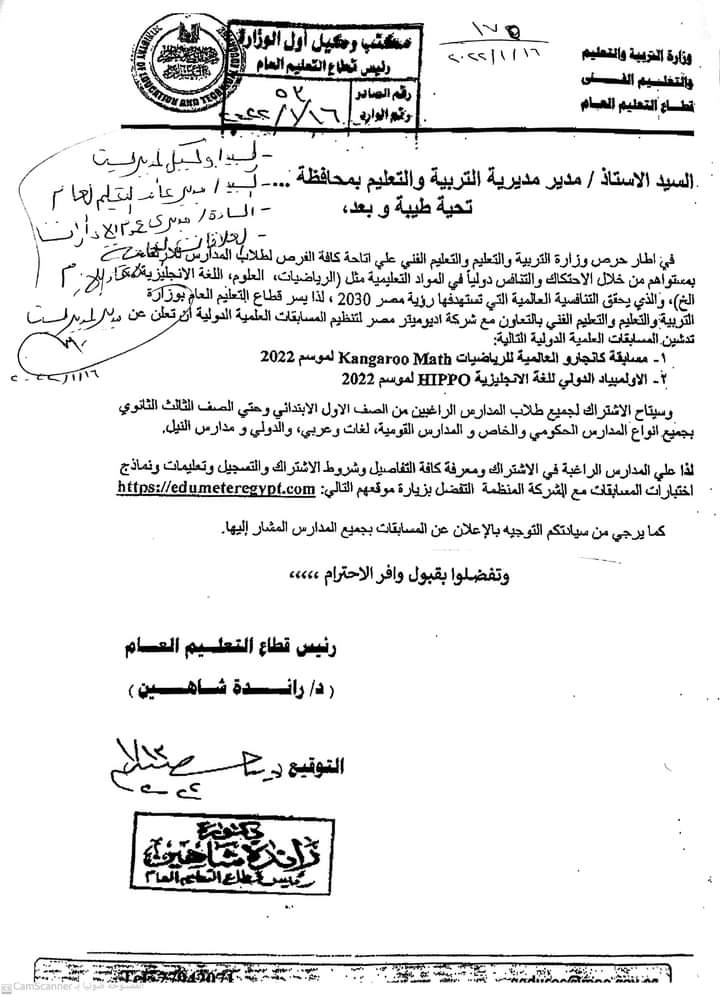 وحصل القاهرة 24 على نص المستند، بشأن اشتراك الطلاب في تلك المسابقتين.