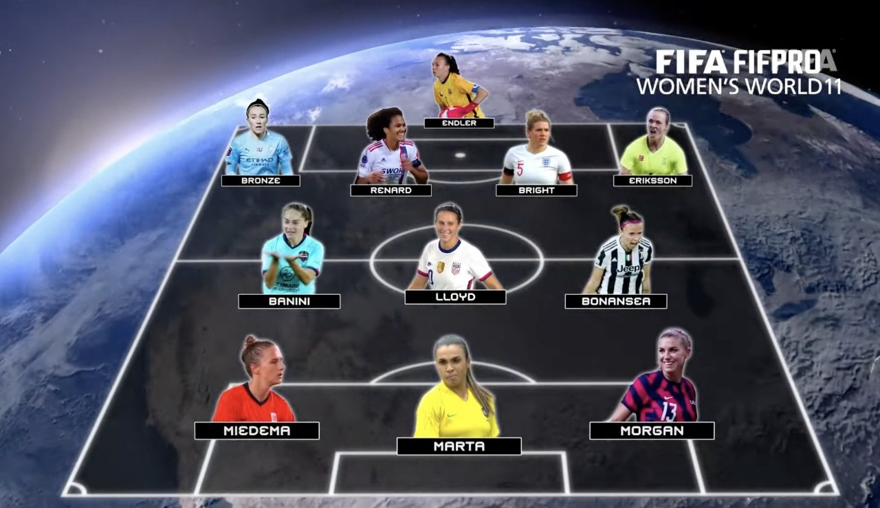 وجاء التشكيل المثالي للسيدات في عام 2021 كما يلي: