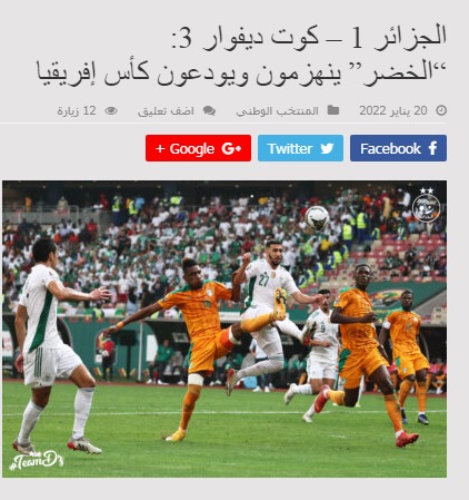 عنونت الخبر فور انتهاء المباراة بين الجزائر وكوت ديفوار بفوز الأخير بثلاثة أهداف مقابل هدف في مباراة للنسيان للمنتخب الجزائري بـ الخضر يودعون الكان بهزيمة ثقيلة.