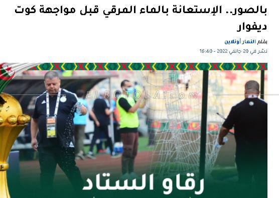 نشرت صحيفة النهار الجزائرية صورا ترصد رش أحد أفراد طاقم المنتخب الجزائري ملعب مباراة كوت ديفوار، في بطولة كأس الأمم الإفريقية، بماء مقروء عليه قرآن، من أجل فك النحس، حسب زعم الصحيفة.