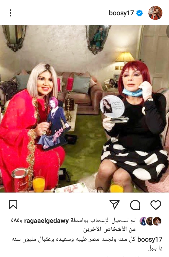 وشاركت بوسي شلبي، عبر حسابها الشخصي على موقع انستجرام، صورة جمعتها بالفنانة نبيلة عبيد، معلقة عليها قائلة: كل سنة ونجمة مصر طيبة وسعيدة، وأضافت: عقبال مليون سنة يا بلبل.