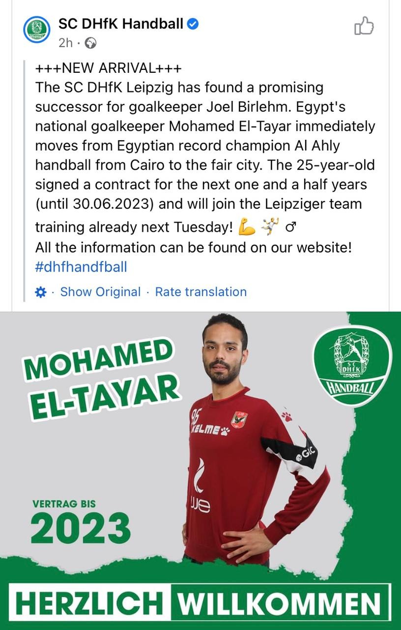 نادى ليزبرج أحد فرق الدوري الألماني لكرة اليد، أعلن عن تعاقده مع الحارس محمد عصام الطيار لاعب الأهلي المصري، خلال فترة الانتقالات الشتوية الجارية بالدوري الألماني.