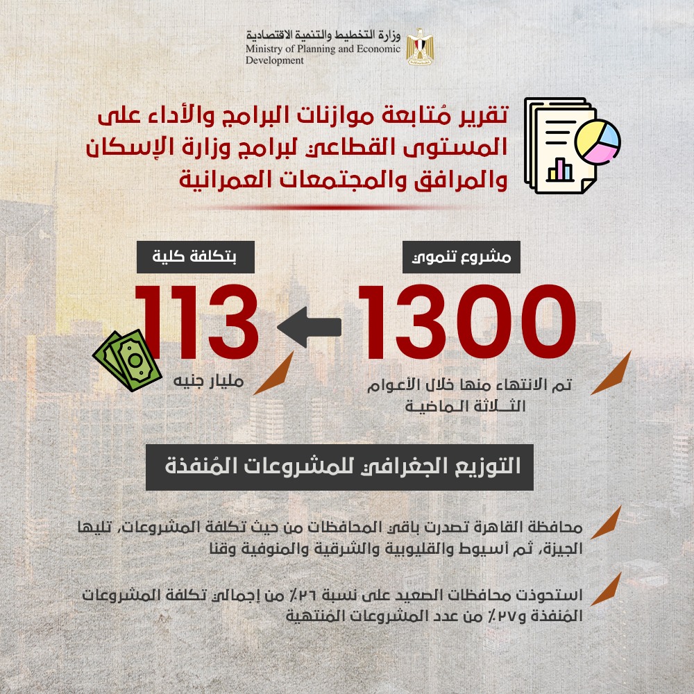 التخطيط: الانتهاء من 1300 مشروع تنموي بتكلفة 113 مليار جنيه في 3 سنوات