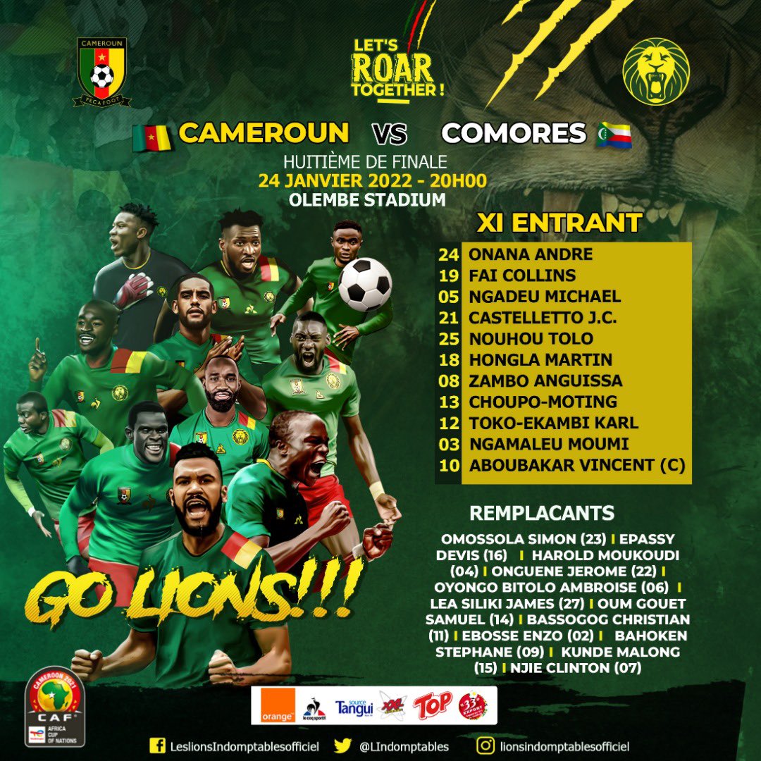 ومن المقرر أن تنطلق مباراة الكاميرون ومنافسه منتخب جزر القمر، في تمام الساعة التاسعة مساءً بتوقيت القاهرة والعاشرة مساءً بتوقيت مكة المكرمة والحادية عشر بتوقيت أبوظبي، على ملعب باول بيا ستاديوم، في إطار منافسات دور الــ16 من الكان.