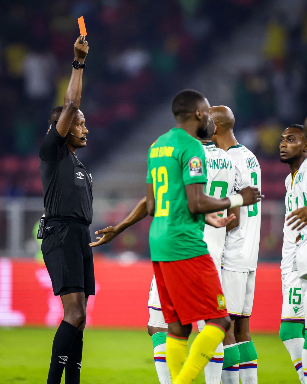وتلقى نجيم عبدو، قائد منتخب جزر القمر كارت أحمر في الدقيقة 7 من عمر الشوط الأول من المباراة، ليغادر أرض الملعب بعد تدخل عنيف على لاعب وسط الكاميرون، مومي نجاماليو، وبــ9 لاعبين صمد منتخب جزر القمر طوال الشوط الأول من المباراة وبدون حارس مرمى.
