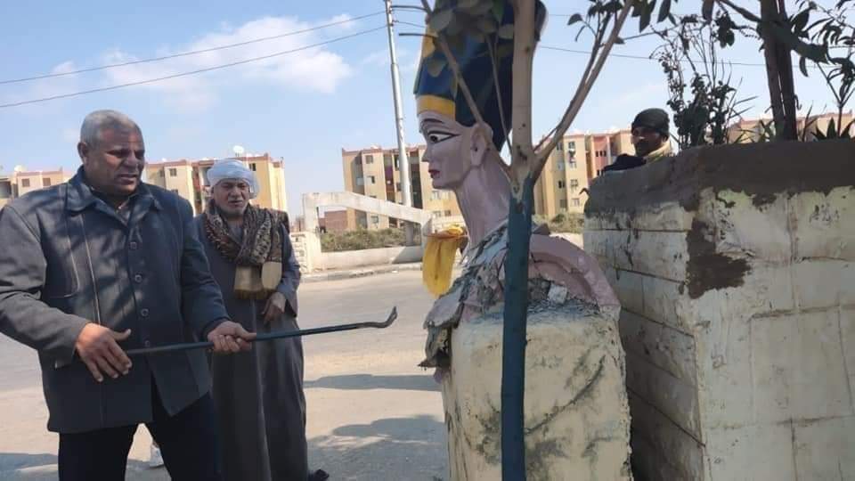بعد غضب رواد فيسبوك.. إزالة تمثال نفرتيتي المسيء ببني مزار