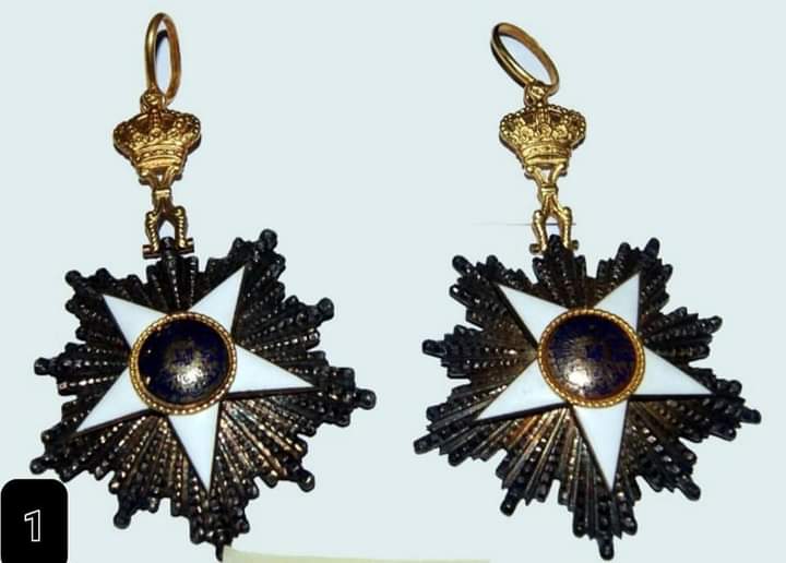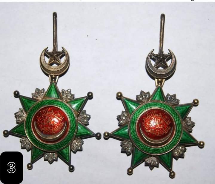 - نيشانين عثماني من الطبقة الثالثة من الذهب والفضة التركي؛ كل نيشان يتكون من وسام فقط دون رصيعة.