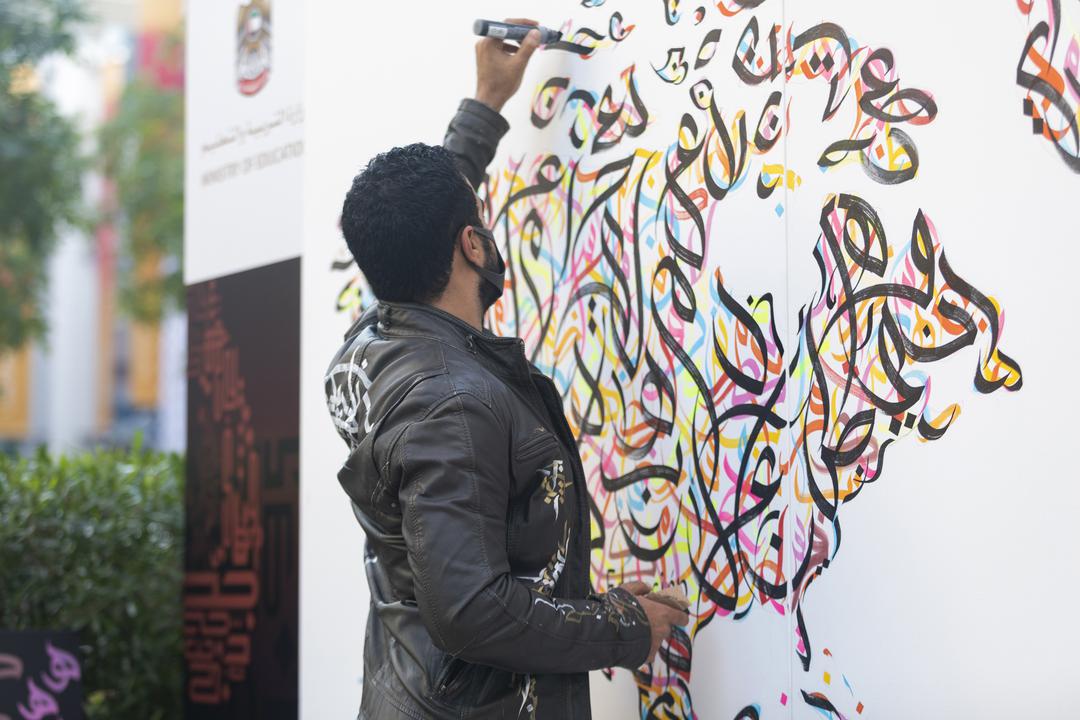 كانت وزارة التربية والتعليم قد وجهت دعوة في وقت سابق إلى فنان الخط العربي، ضياء علام، ومجموعة من الطلاب الدوليين؛ الذين شرعوا في العمل على رسم جدارية أبعادها 7مX3م، تقع بالقرب من منصة الشمس بمنطقة الفرص في موقع إكسبو 2020، وتعاونت المجموعة فيما بينهم، بداية من الفكرة وحتى التنفيذ العملي؛ الذي خرج بأفضل صورة على الاطلاق، مُعبرًا عن رسالة أسبوع التعليم المقام في إكسبو في الوقت الحالي.