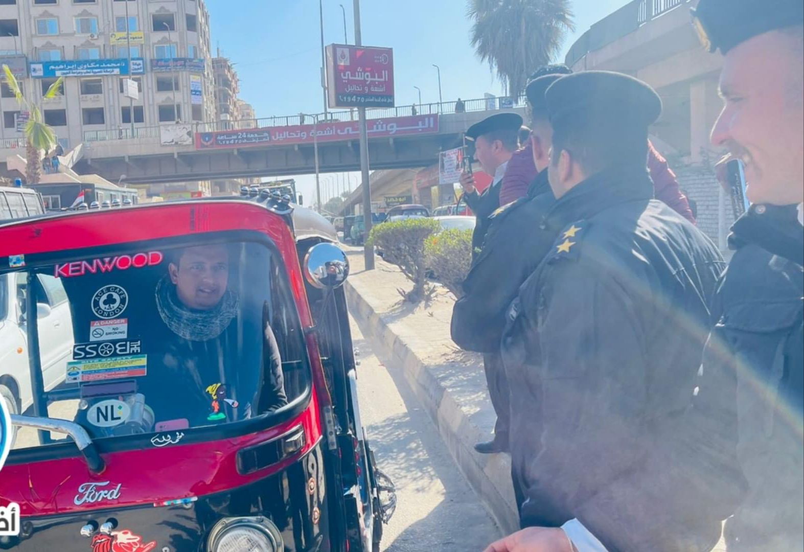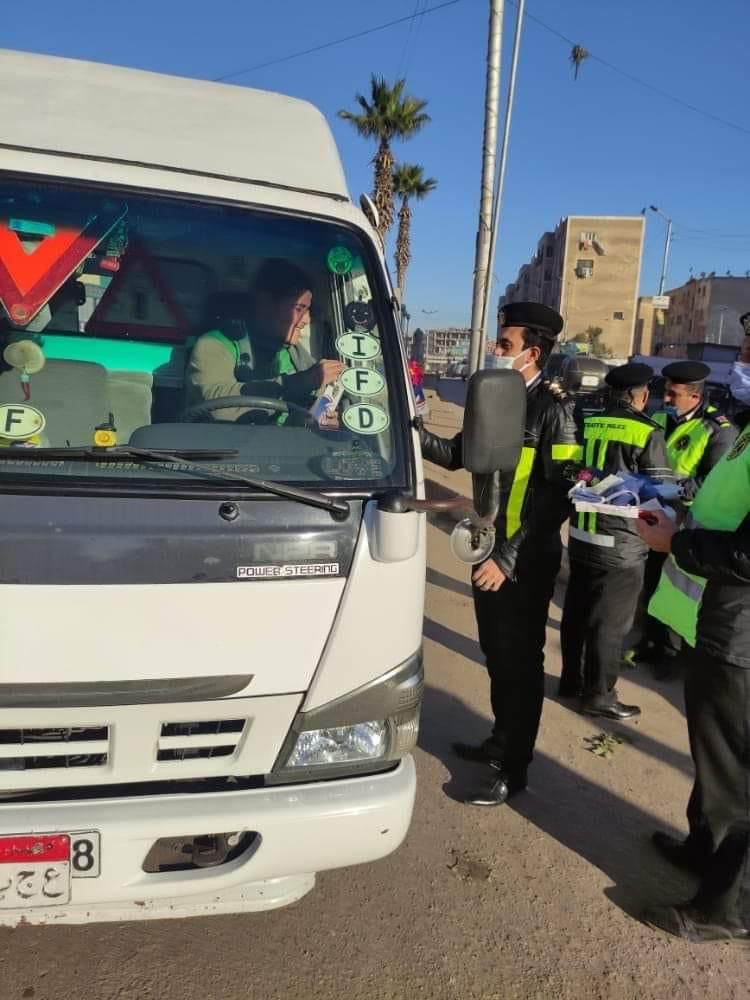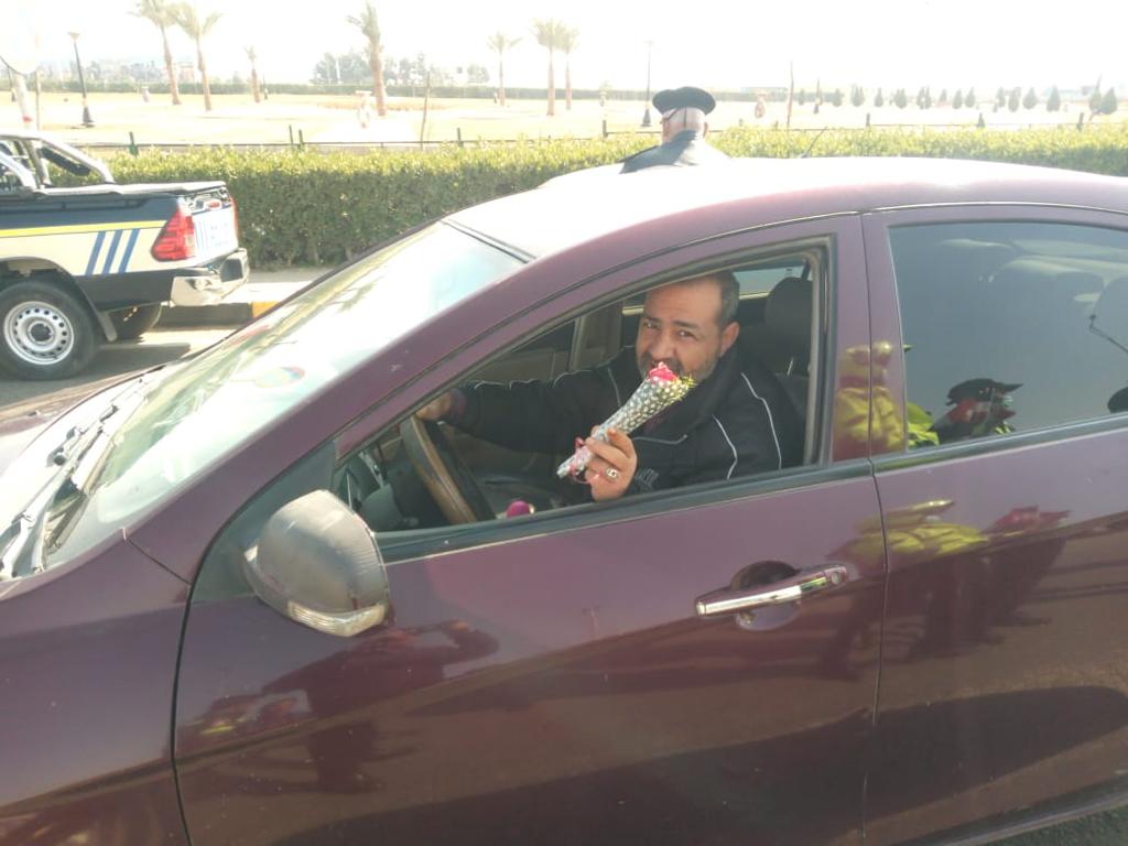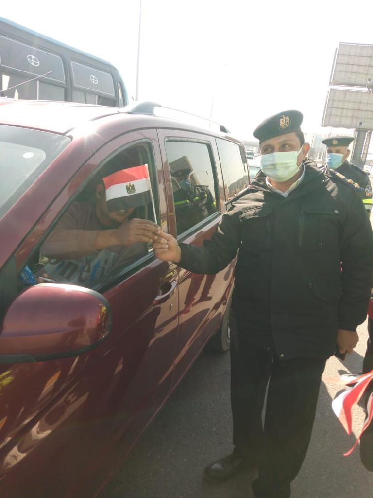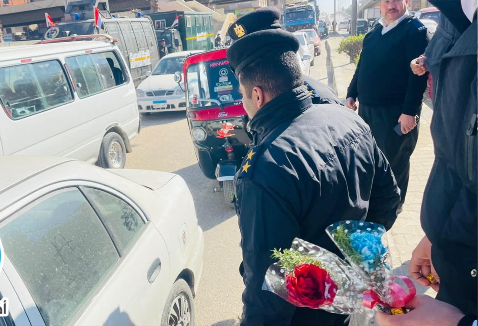 ورد وعلم مصر.. الإدارة العامة للمرور تحتفل مع المواطنين بالطرق والمحاور