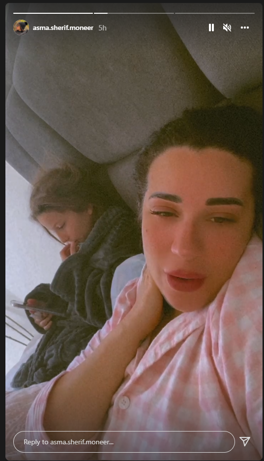 ونشرت أسما شريف منير، فيديو عبر حسابها الشخصي بموقع تبادل الصور والفيديوهات القصير انستجرام، يجمعها بـ ابنتها، وهما يخضعان للعزل المنزل بعد إصابتهما بفيروس كورونا.