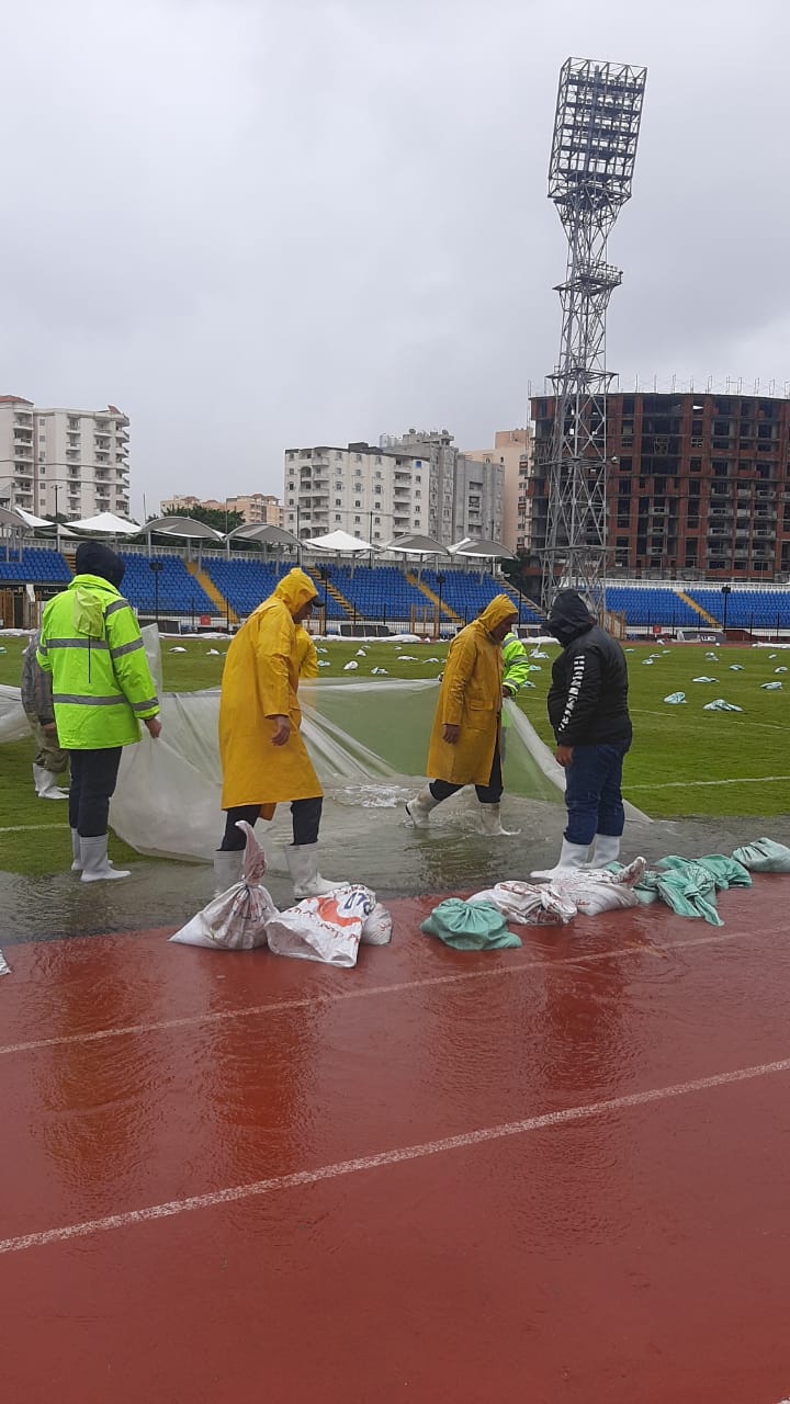 ومن جانبه أكد أيضا أن حكم المباراة قام منذ قليل بمعاينة أرضية الملعب حيث كان برفقة مساعديه وطالب بوضع كميات من الرمال على بعض الأماكن التي أغرقتها مياه الأمطار.