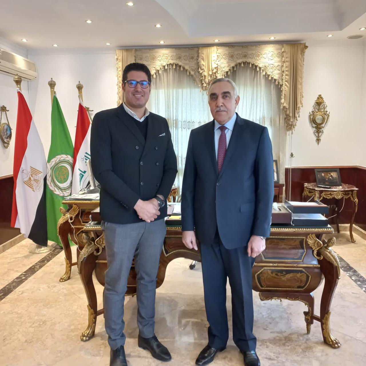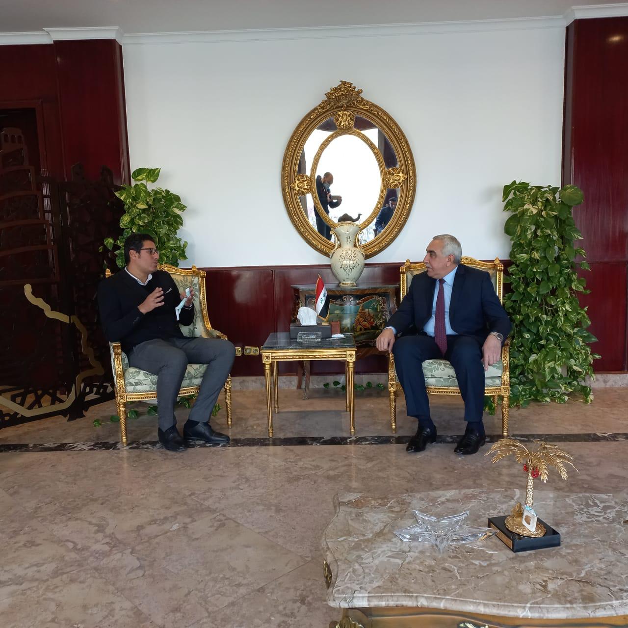 واستقبل الوفد الدكتور أحمد نايف الدليمي سفير دولة العراق بجمهورية مصر العربية، وحسين كاظم حسين الملحق الثقافي لسفارة جمهورية العراق، بالإضافة إلى نائب القنصل العراقي.