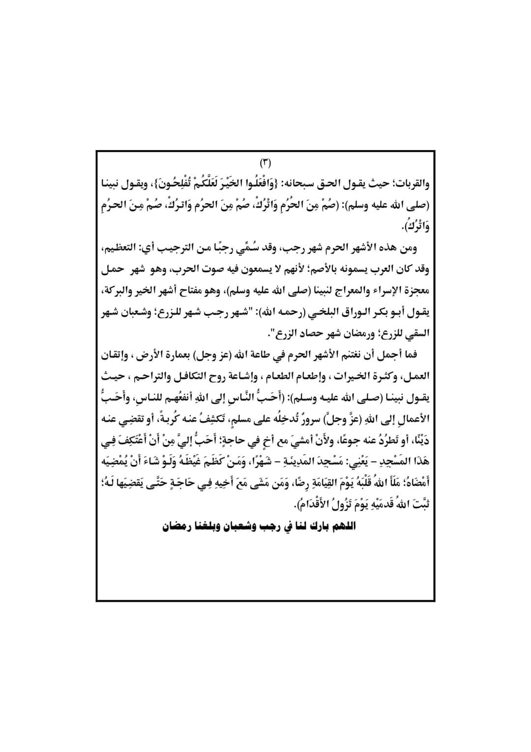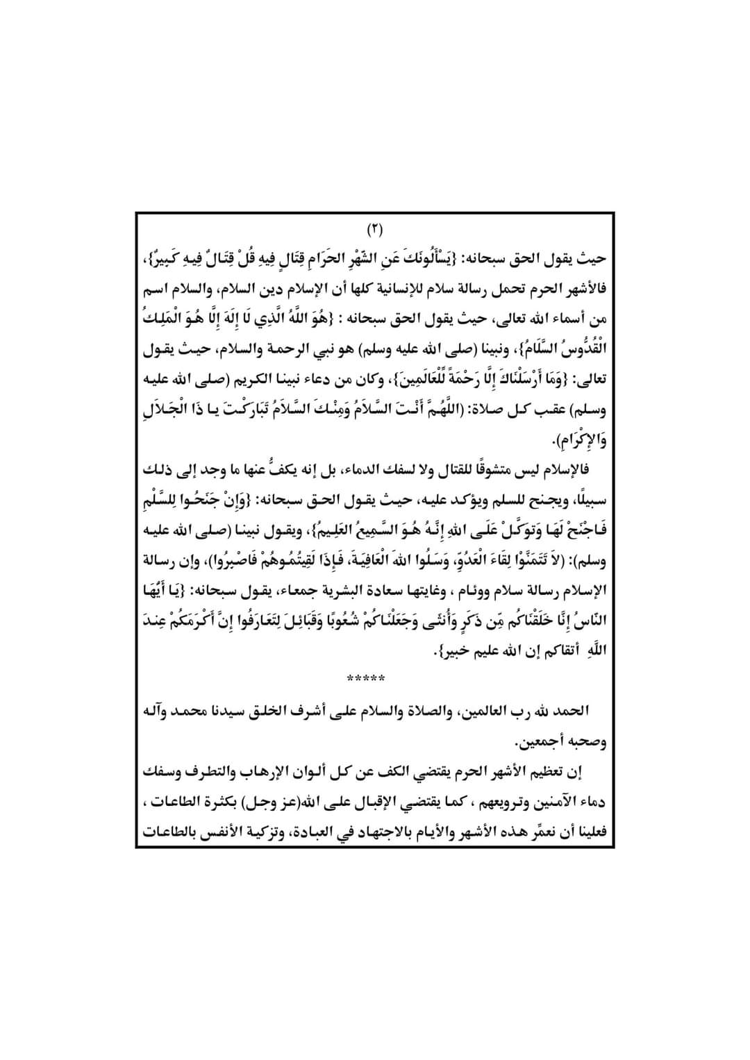حددت وزارة الأوقاف، موضوع خطبة الجمعة المقبلة، الموافق 4 / 2 / 2022، تحت عنوان الأشهر الحرم رسالة سلام للإنسانية.