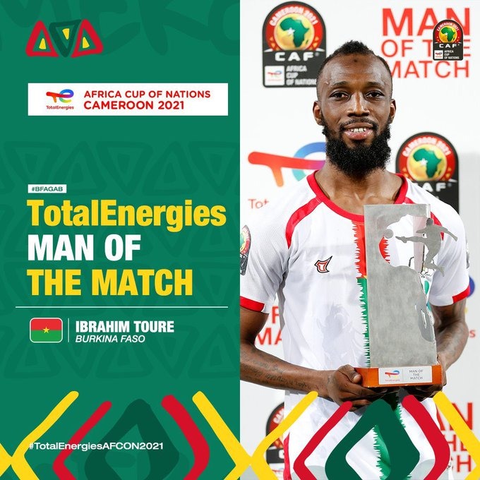 وحصل إبراهيم توري على أفضل لاعب في مباراة تونس وبوركينا فاسو، في المباراة التي انتهت بتأهل الخيول إلى الدور نصف النهائي من كأس الأمم الإفريقية 2021.