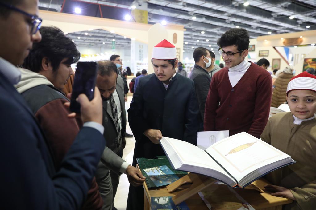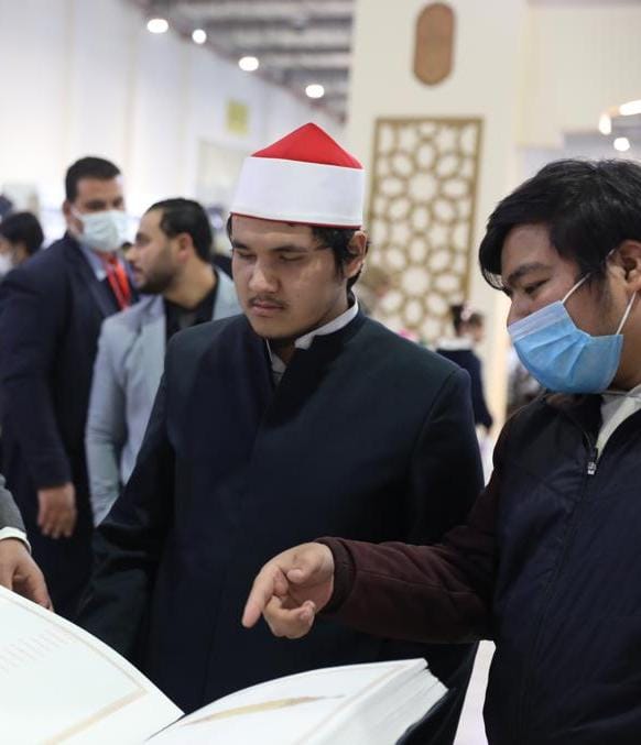 طالب أوزباكي يبهر زوار معرض الكتاب بالتلاوة من مصحف الأزهر بطريقة برايل