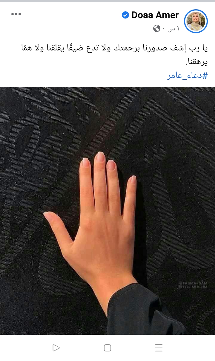 وتابعت دعاء عامر: يا رب اشفِ صدورنا برحمتك، ولا تدع ضيقًا يقلقنا، ولا همًّا يرهقنا.