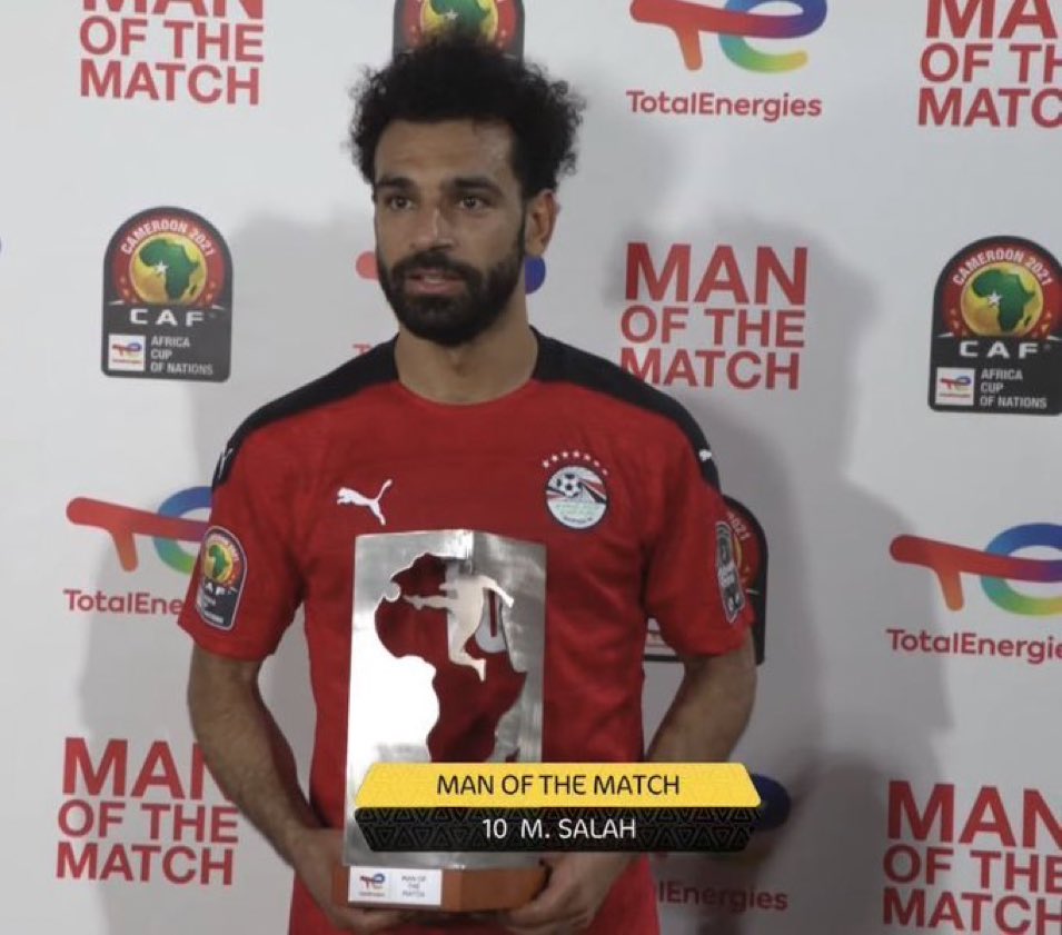 حصد محمد صلاح، جائزة أفضل لاعب في في مباراة مصر والمغرب، والتي انتهت بفوز الفراعنة على أسود الأطلس بنتيجة هدفين مقابل هدف، في المباراة التي أقيمت على ملعب أحمدو أهيدجو، ضمن منافسالت دور الـ8 من مسابقة كأس الامم الإفريقية 2021 بالكاميرون.