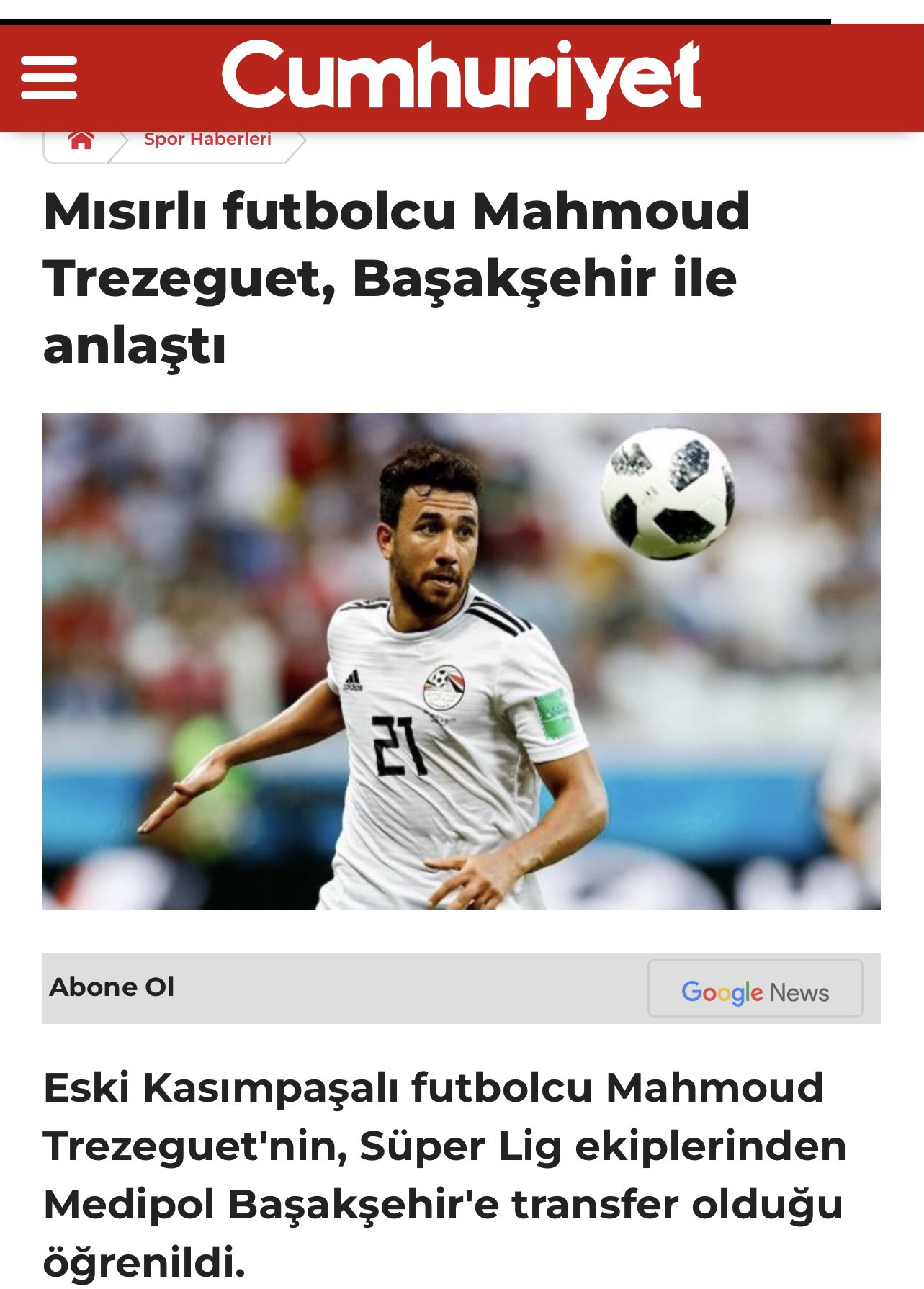 كشفت تقارير صحفية تركية أن رئيس نادي باشاك شهير التركي أعلن ضم لاعبنا المصري محمود حسن تريزيجيه على سبيل الإعارة قادماُ من نادي أستون فيلا الإنجليزي.