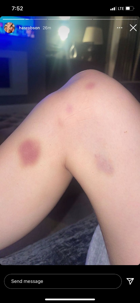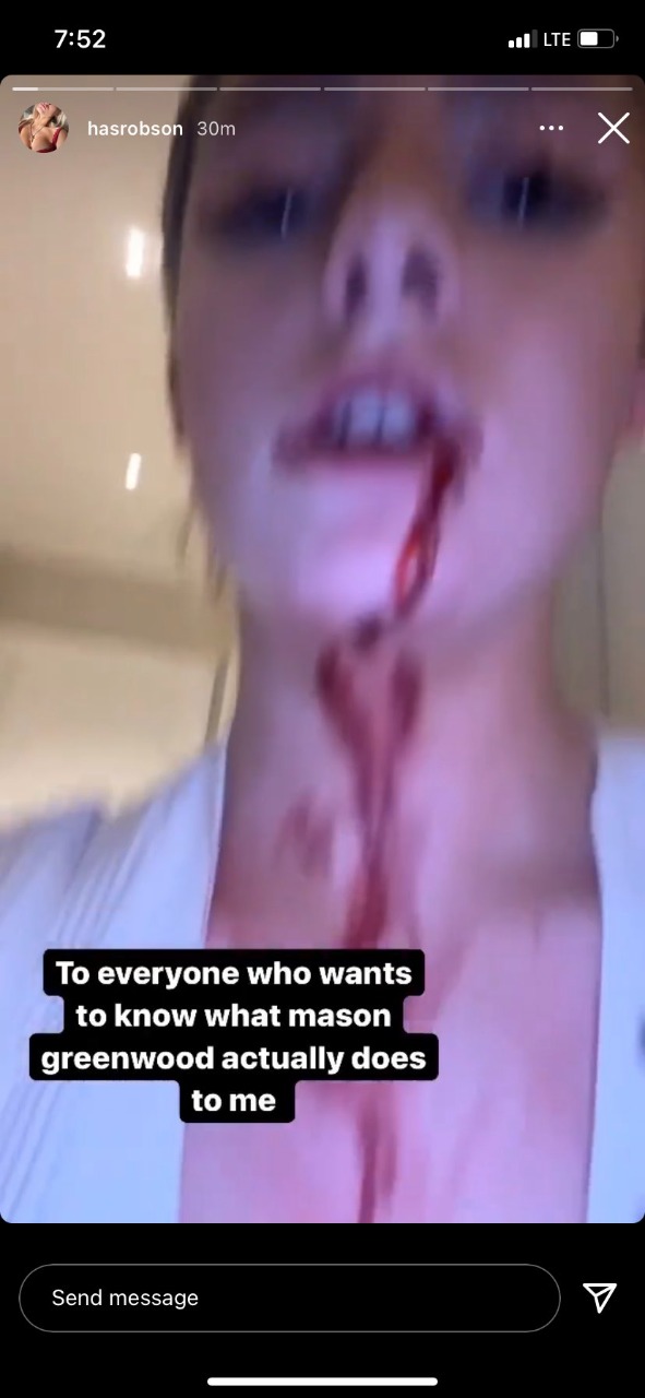 وأضافت الصحيفة الإسبانية أن الشابة نشرت العديد الصور على موقع التواصل الاجتماعي انستجرام - حذفتها لاحقًا - حيث يمكن رؤية الدم والكدمات التي كان من المفترض أن تكون ناجمة عن هجوم شنه اللاعب الإنجليزي الدولي، وكتبت هارييت روبسون: لكل من يريد أن يعرف ما يفعله ماسون جرينوود بي حقًا.