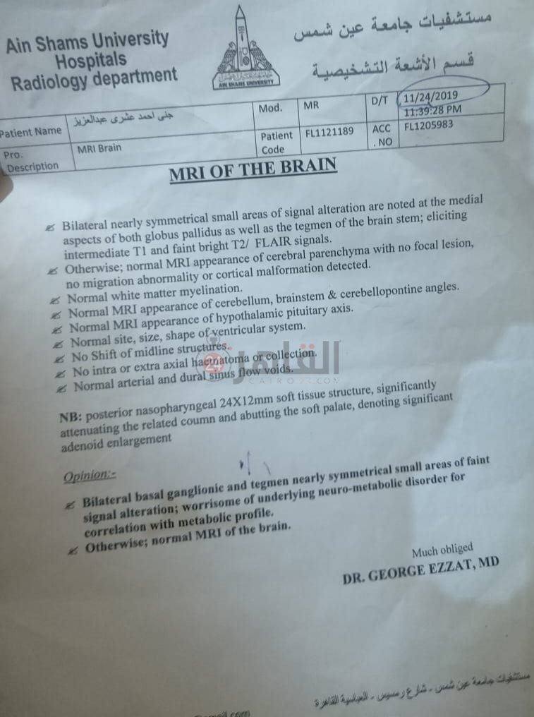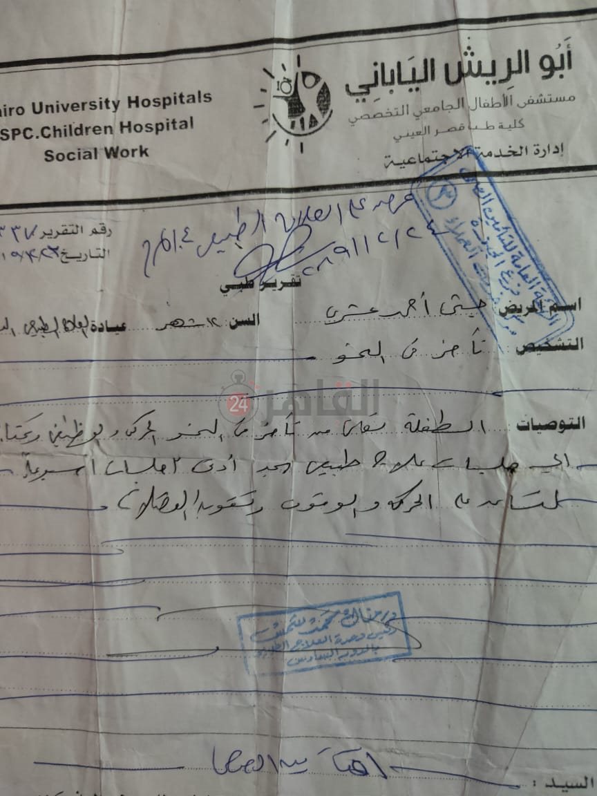 واختتمت، قائلة: أنا بستغيث بالسيد رئيس الجمهورية لسرعة صرف العلاج لبنتي، أنا كل 15 يوم بدور على رعاية تقبلها لمعالجتها من الالتهاب الرئوي، أرجوكم أنقذوا جنى، بنتي بتموت مني، ومفيش وقت.
